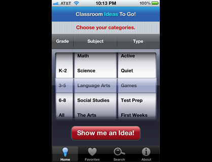 The perfect app for busy teachers, Classroom Ideas to Go! offers more than 1,200 hands-on ideas to use in your lessons. Browse by grade level, subject, and activity type (from group work to crafts to games) to instantly find hundreds of ideas from Instructor, Scholastic’s magazine for K–8 teachers.