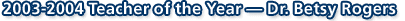 For these beliefs and helping her students feel constantly engaged in learning, Rogers will be named 2003 National Teacher of the Year by President George W. Bush at a White House ceremony on April 30, 2003. Also recognized at this event will be the 2003 State Teachers of the Year.