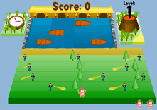Your mission, should you choose to accept it, is to move your character past the guards and over the river without getting caught or drowning.
