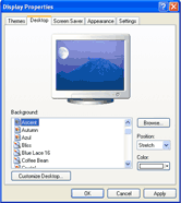 On the tabs at the top of the "Display Properties" window, select "Background." (On Windows XP, select “Desktop”)