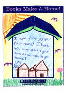 At Humanity Plaza, a week-long project sponsored by NBC News, Warner Music Group, and Habitat for Humanity, volunteers helped build homes for families displaced by the Gulf Coast hurricanes. Through our Books Make a Home initiative, Scholastic donated a library of children’s books for every home built. We have received more than 50,000 bookplates with special messages from children all around the country. It is our pleasure to share some with you. |
