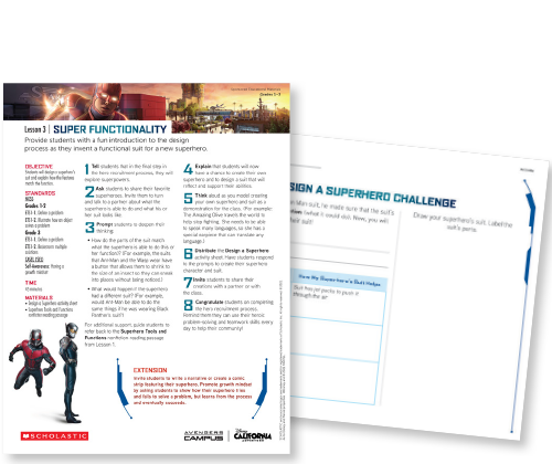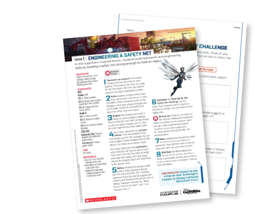 Avengers Campus is calling all heroes to develop their superpowers! Start with a fun engineering design challenge for superheroes, then invite your students’ families to enter the sweepstakes for a chance to win a trip from Scholastic to the all-new Avengers Campus at Disney California Adventure® Park!