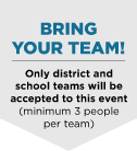 Bring your team! Only district and school teams will be accepted to this event (minimum 3 people per team)