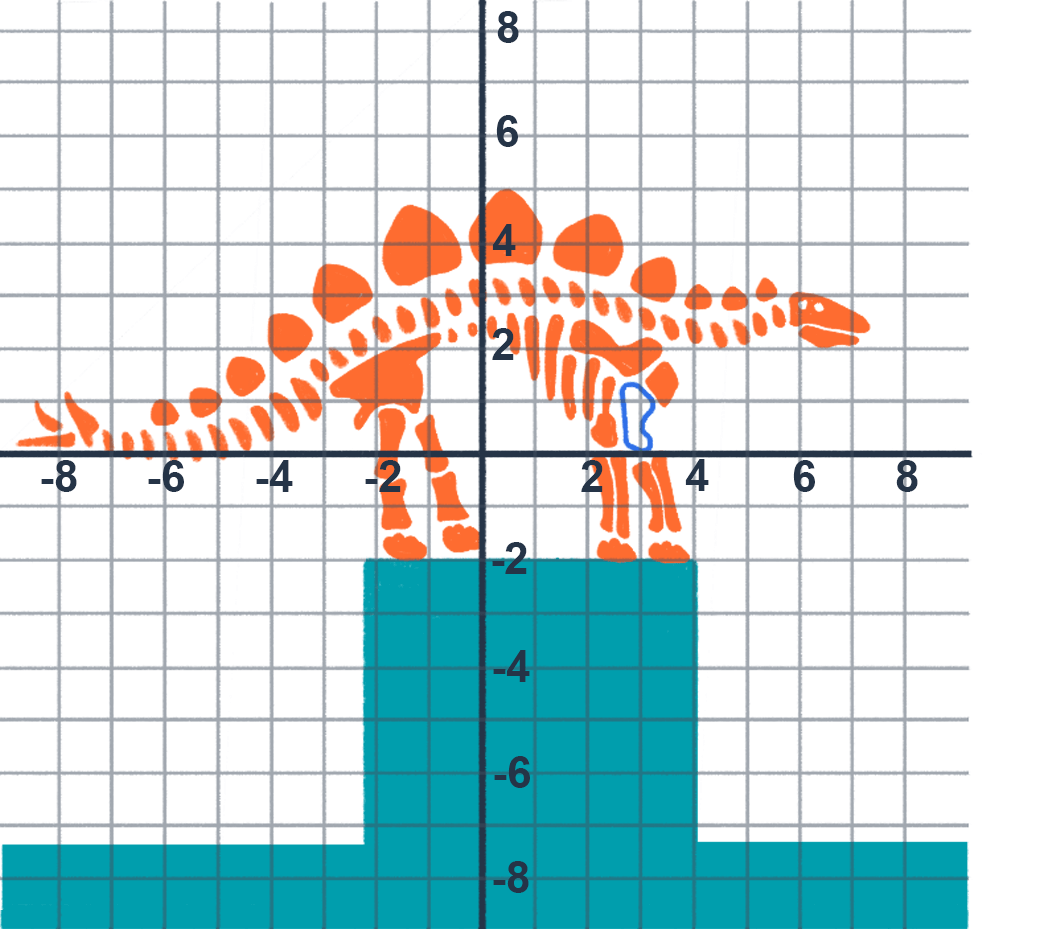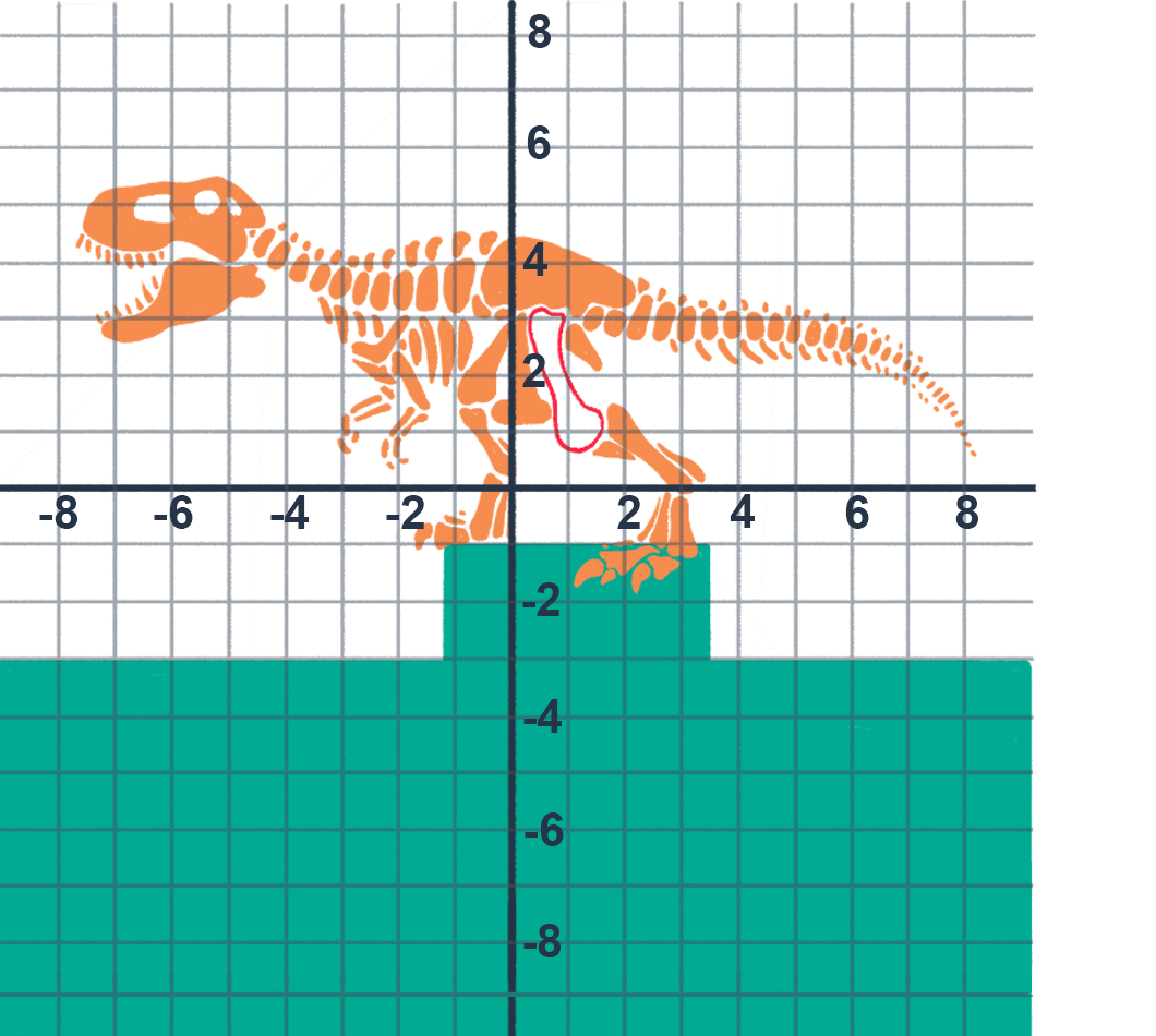 Therefore! I think that means we need to set the Fossilifter to move the fossil 6 units right on the x-axis and 8 units up on the y-axis.