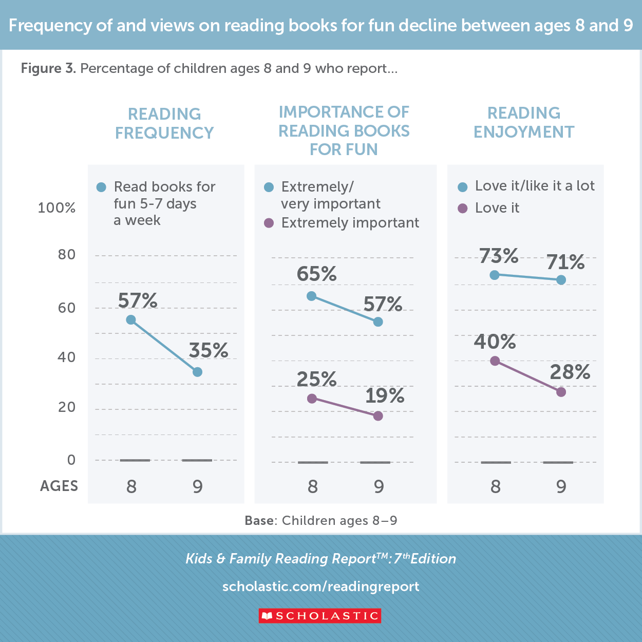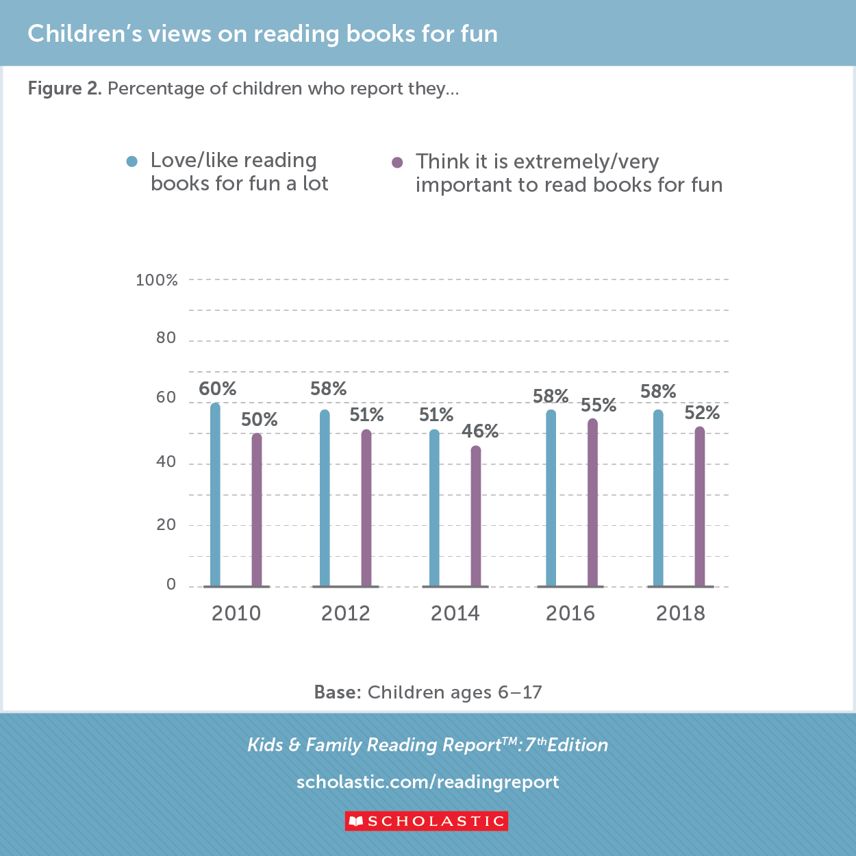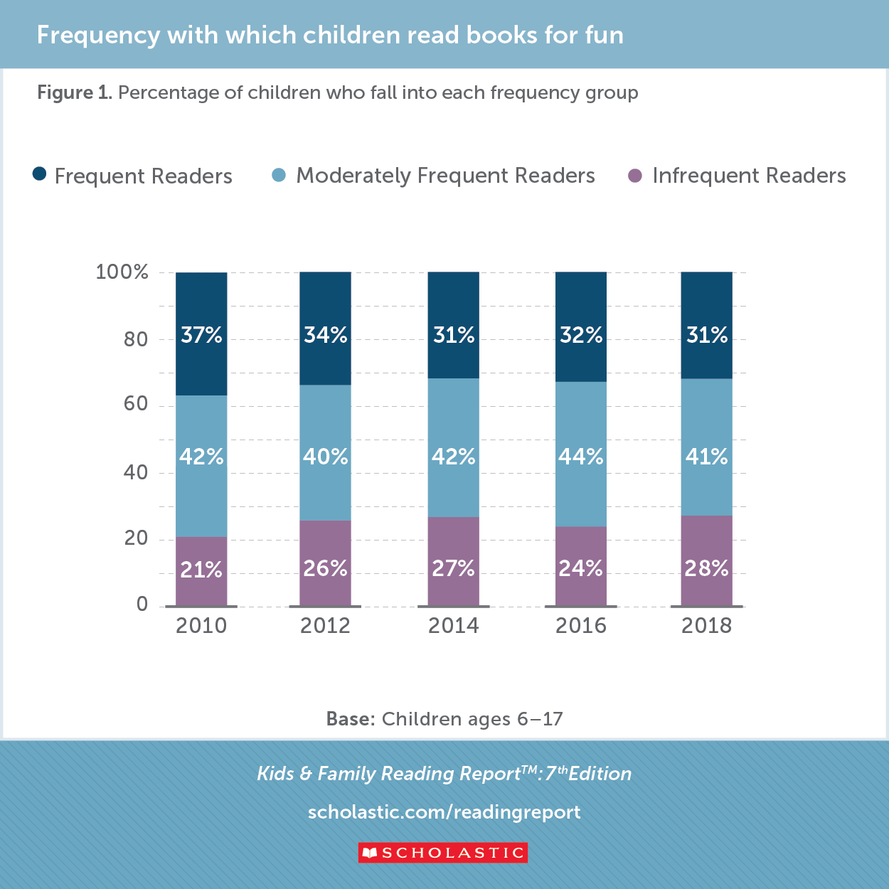 The Kids & Family Reading Report is a national survey sharing the views of both kids and parents on reading books for fun and the influences that impact kids’ reading frequency and attitudes toward reading. It is a biennial report with 2023 unveiling the eighth edition.