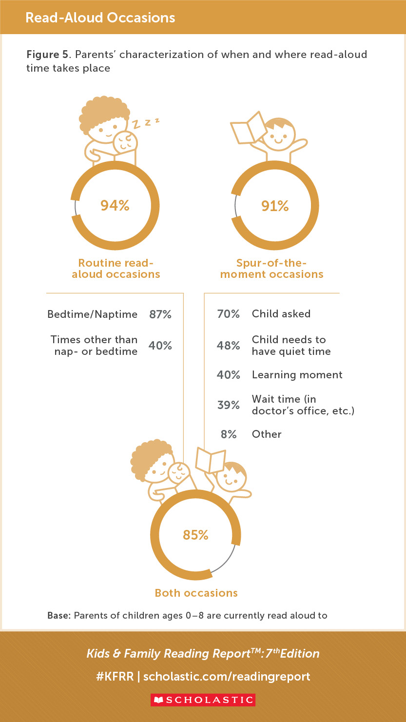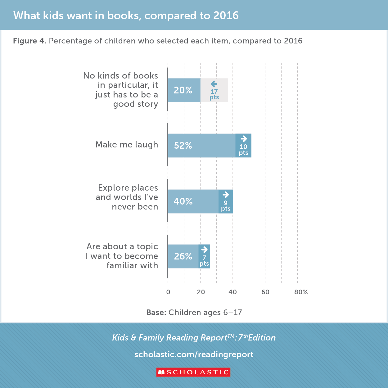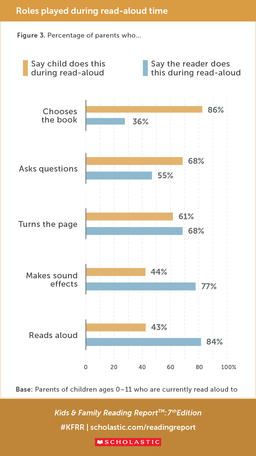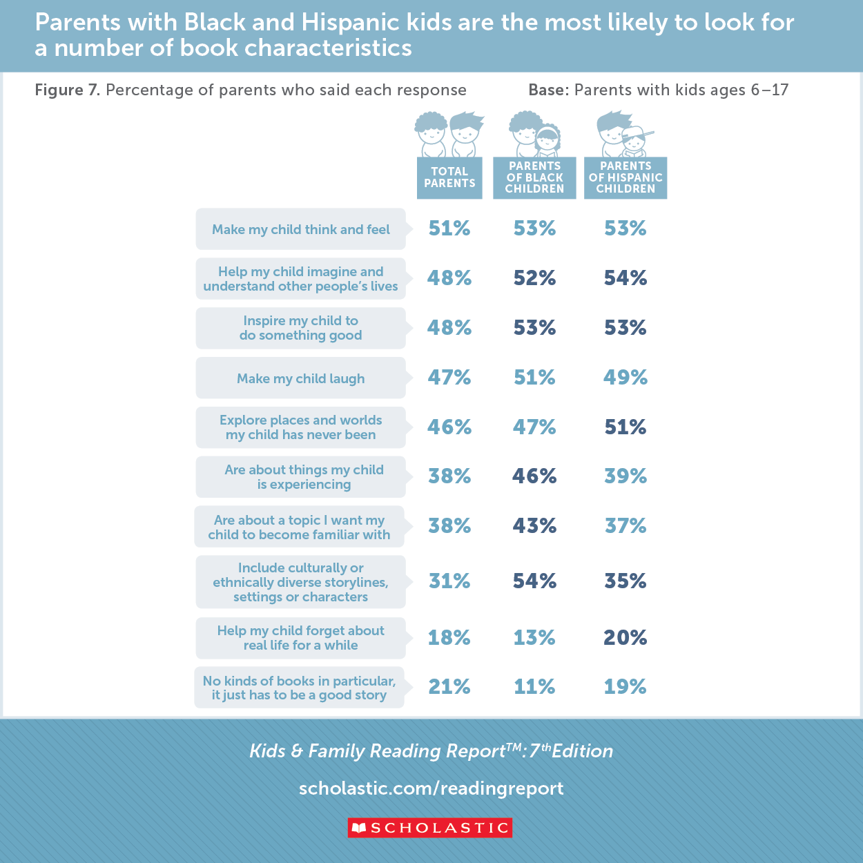 In late 2022, Scholastic, in conjunction with Fluent Research, conducted the eighth edition of its Kids & Family Reading Report™ survey to explore family attitudes and behaviors around reading books for fun. The key findings of this research are based on a nationally representative sample of 1,724 parents and children, including 531 parents of children ages 0–5; 1,193 parents of children ages 6–17; plus one child age 6–17 from the same household. The survey sample was sourced and recruited by Ipsos using their nationally representative KnowledgePanel®. Results were weighted where necessary by children’s age, gender, race, region, metro status, and household income to align them with their actual proportions in the population.