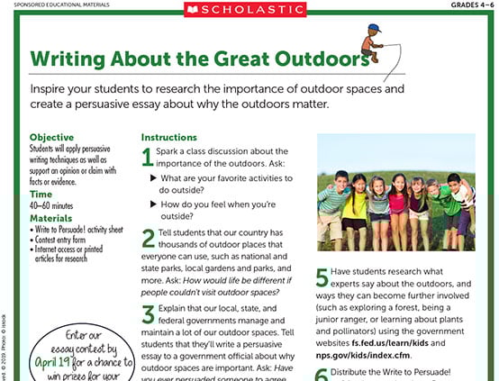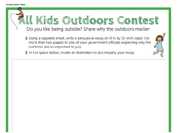 Spring is here! It’s the perfect time for students to flex their writing muscles with a persuasive essay about why the outdoors matter. Students can write their essay to a government official—and enter our contest for a chance to win prizes for your class!