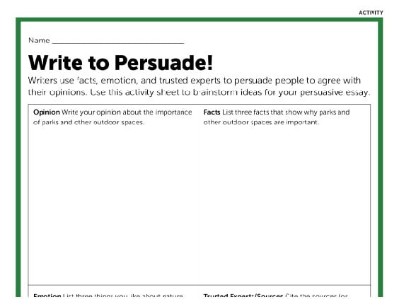 ACTIVITY Write to Persuade GRADES 4–6 DOWNLOAD