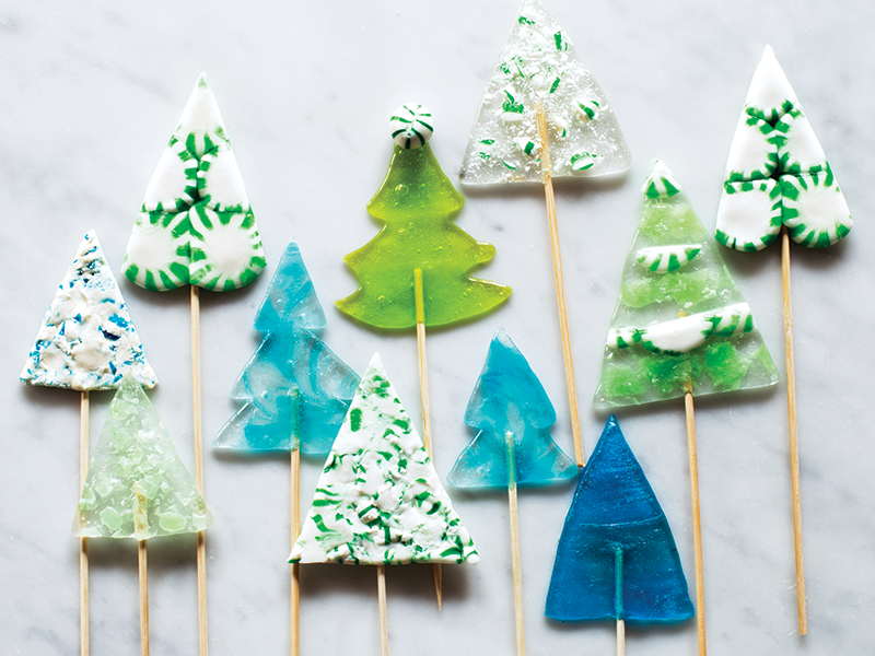 Melted hard candies yield a frosty forest! Spruce up the evergreens with a variety of translucent and opaque hues plus straight and jagged edges.