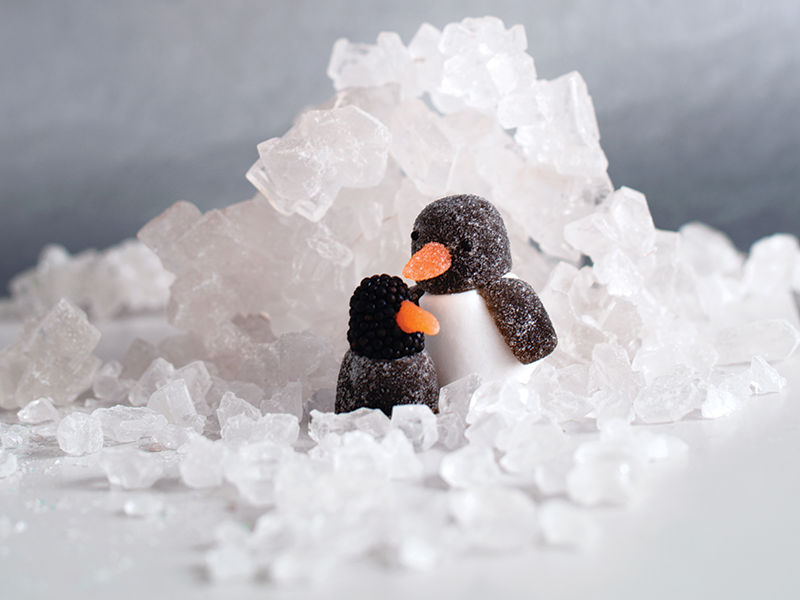 After assembling this snuggly mama and baby duo, build them an igloo out of a pile of rock candy gems ($5 for 1 lb, Candynation.com).