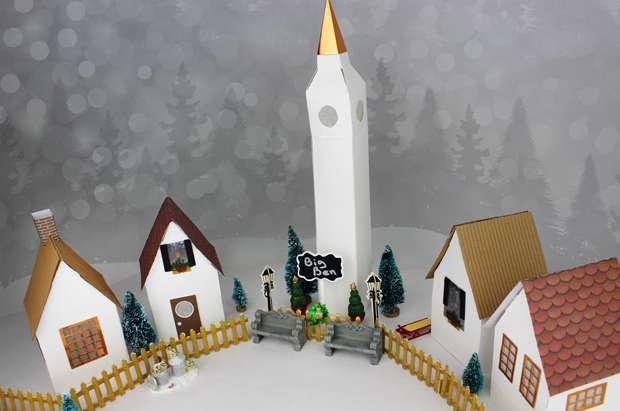1. Print the Putz Village building PDF on card stock, one set for each house you plan to build. Print one copy of the Big Ben PDF on card stock.
