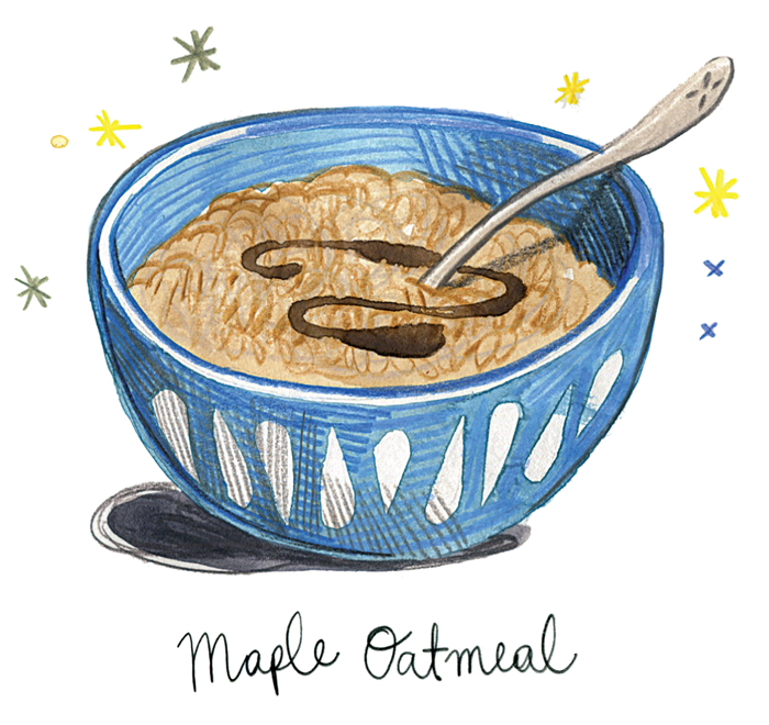 Combine ½ cup each steel-cut oats and quinoa (rinsed well) in a saucepan with 3 cups vanilla almond milk and a pinch of salt. Bring to a boil, then reduce the heat and simmer, stirring occasionally, about 20 minutes. Divide among bowls and drizzle with maple syrup.