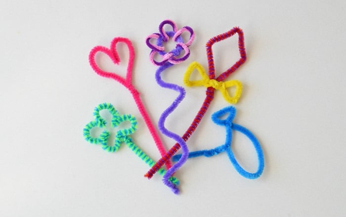 Bring a little color to bubble blowing with homemade pipe cleaner wands. Ask your child to twist and curl pipe cleaners into super-cute shapes or wrap them around fun cookie cutters for more precise lines. Then, he or she can take those fantastically fuzzy creations outside and have a bubble party!