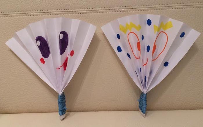 Beat the heat with a little something silly! See who can draw the goofiest guise then fold your paper faces into fans. If your kids want to dress their fans up, attach a clothespin to the bottom and wrap twine around it to create a fancy handle.