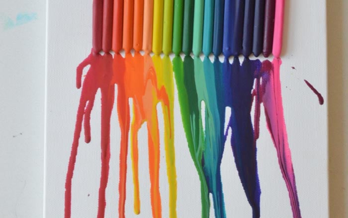 Give crayon stubs a chance to shine – all you need is a canvas, hot glue, and a hairdryer. Start out by having your child line up crayons at the top of the canvas and help him or her glue them down. Then, stand the canvas upright, point your hairdryer down (adults only!), turn it on, and let the melting begin! (Warning: melted crayons might be hot.)