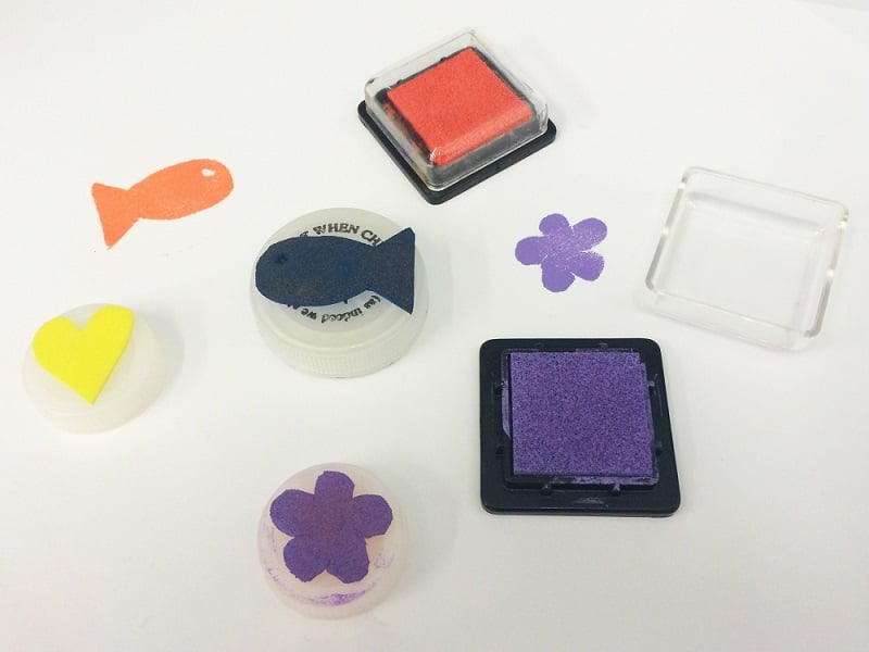Turn a few pieces of foam into hours of fun. Kids can doodle an array of nifty shapes on craft foam, cut them out, then glue them to bottle caps. If kids can draw it, they can stamp it!