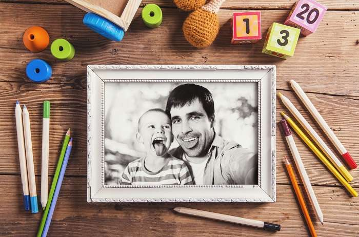 - Decorate a precut picture frame (such as a foam frame from a craft store) or make your own from posterboard or oak tag paper. Cut differently colored and textured paper into small shapes. Invite your child to rub a glue stick over the picture frame and decorate it with the paper squares to create a mosaic effect.