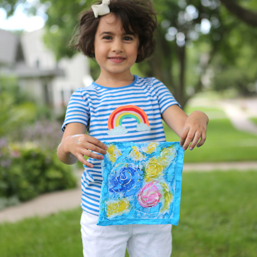 Step 7: Hang your child’s masterpiece on a tree branch or towel rack to dry.