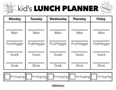A healthy lunch helps aid a productive school day for your growing student. Use this reusable printable to start planning together—and avoid those early-morning "What do you want for lunch today?" debates!