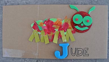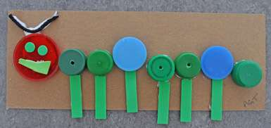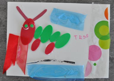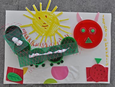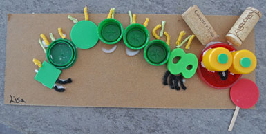 In the Studio, we challenged visitors to create their own version of The Caterpillar using an assortment of found materials. Here are some examples of what kids and adults glued together!