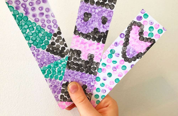 These bookmarks provide a first pointillism project that's just the right size — as starting with small surfaces can help to make a new art technique less daunting for children.