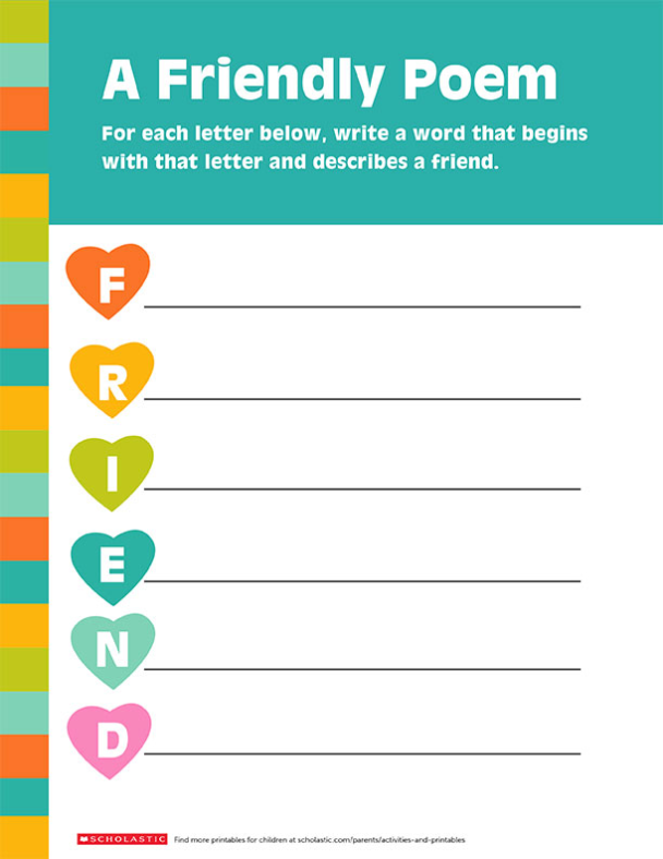 When we have friends in our life, it's always nice to show our appreciation for them from time to time. Let the kids make friendship poems to share with their buddies. They'll make their friends feel special and build writing skills at the same time.