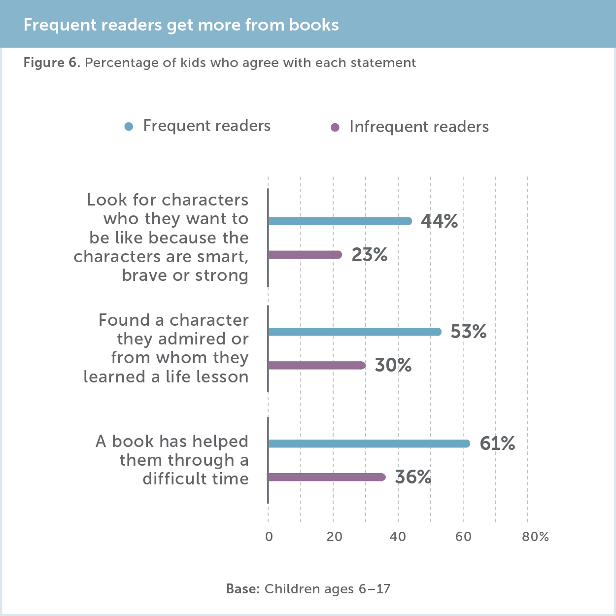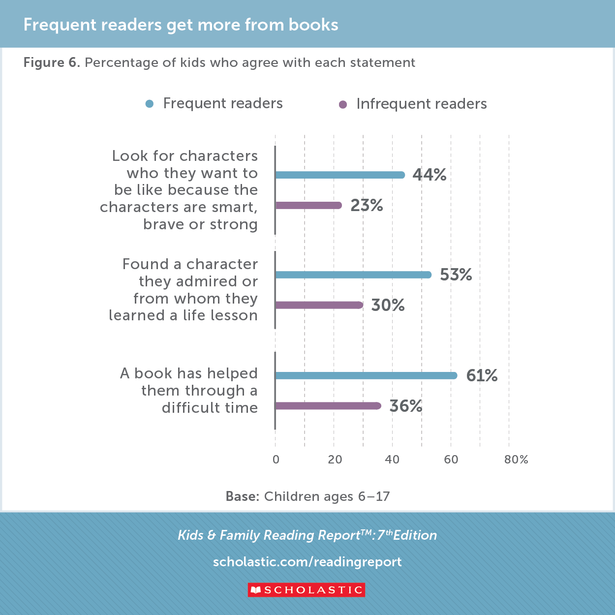 The Kids & Family Reading Report punctuates that the more kids read, the more likely it is that the social-emotional side of literacy is reflected in their views on books and characters.