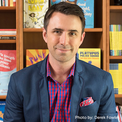 Jarrett J. Krosoczka is a two-time winner of the Children’s Choice Book Award for the Third to Fourth Grade Book of the Year, an Eisner award nominee, and is the author and/or illustrator of more than thirty books for young readers. His work includes several picture books, the Lunch Lady graphic novels, and Platypus Police Squad middle-grade novel series. Jarrett has given two TED Talks, both of which have been curated to the main page of TED.com and have collectively accrued more than two million views online. He is also the host of The Book Report with JJK on SiriusXM’s Kids Place Live, a weekly segment celebrating books, authors, and reading.