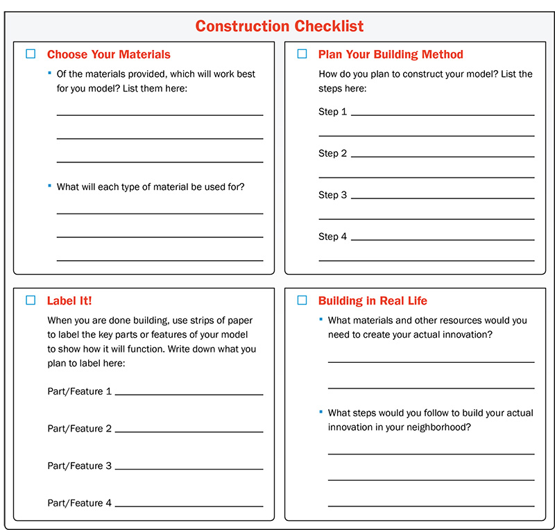 You've worked long and hard creating and developing a design idea to benefit your community. Now it's time to show others what your innovation will look like in real life. So just like a real engineer, you're going to build a model of your innovation.