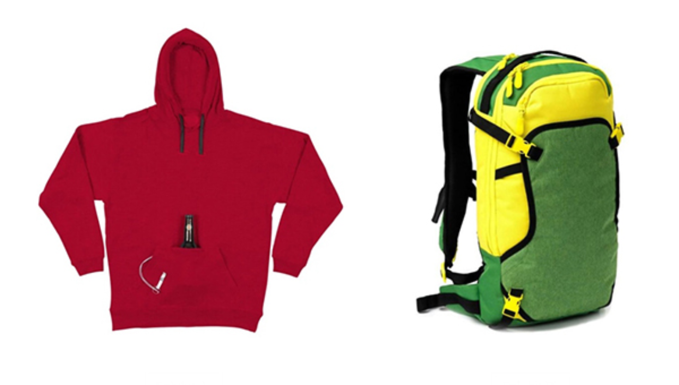 Por ejemplo, observe la sudadera y la mochila que se encuentran a continuación. Ambos productos tienen un bolsillo oculto para que el sistema de cigarrillo electrónico libere aerosol discretamente mediante una manguera que está entrelazada en la tela. Estos productos les facilitan el vapeo a los adolescentes sin llamar la atención de sus padres, maestros u otros adultos.