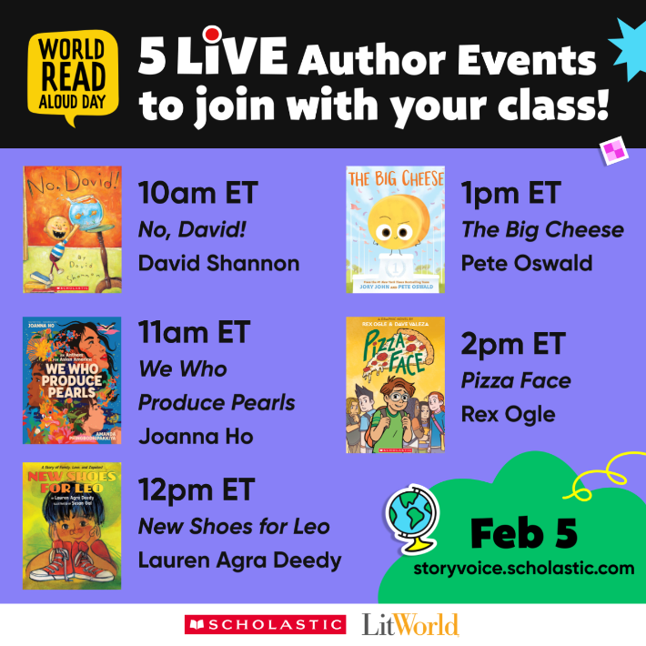February 5 is World Read Aloud Day, and is a wonderful opportunity to share the joys of reading with your class. Created by LitWorld and sponsored by Scholastic, World Read Aloud Day challenges readers of all ages to pick out their favorite titles, find and audience, and read aloud!