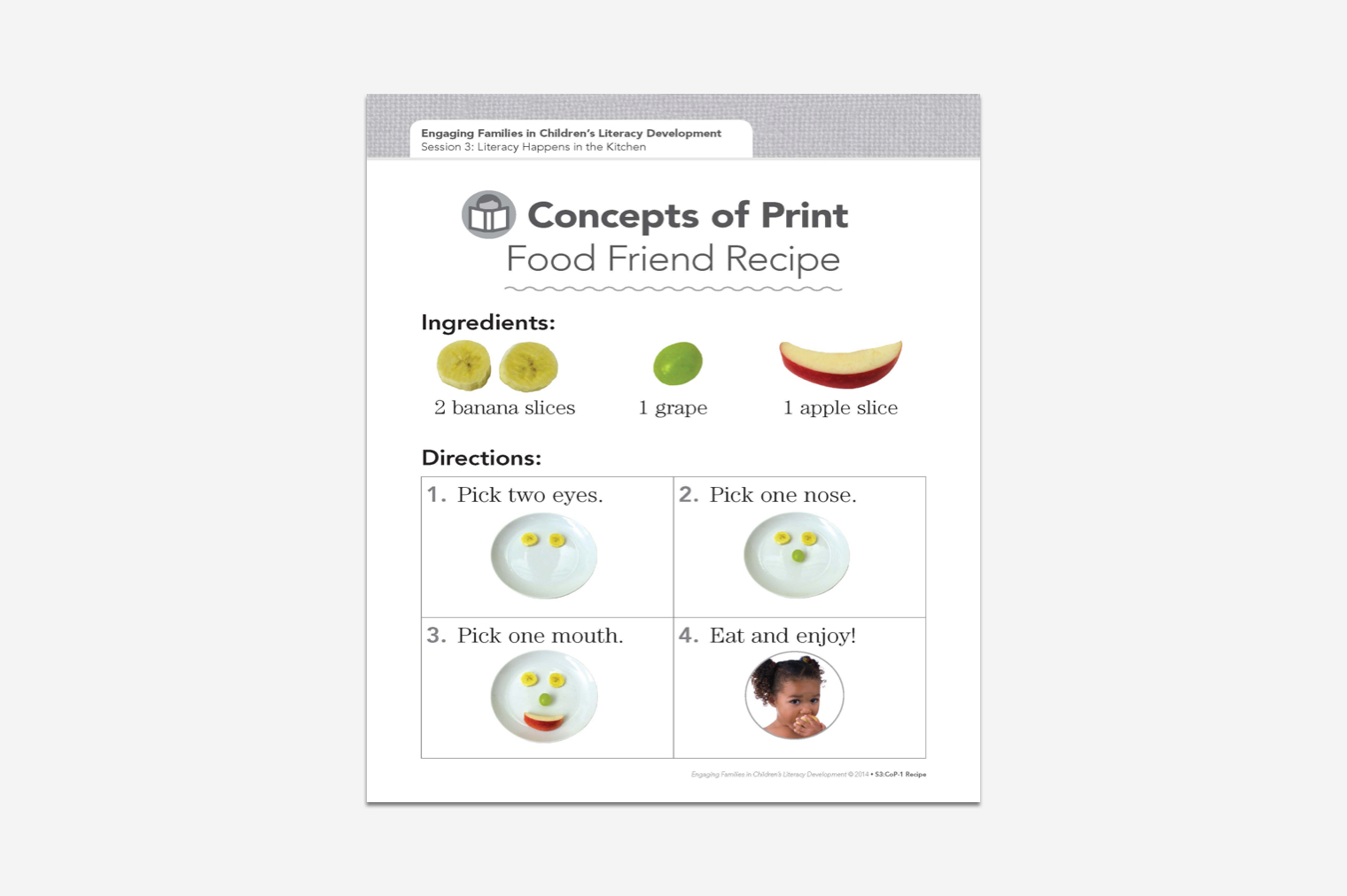 Engaging Families is a series of five 90-minute early childhood literacy workshops with videos, hands-on activities, and a Workshop Leader’s Guide with step-by-step support for involving families in their children’s literacy growth. These easy-to-implement workshops show parents how to practice literacy in every area of a child’s life: in the living room, kitchen, and bathroom, and when they are out and about in the community.